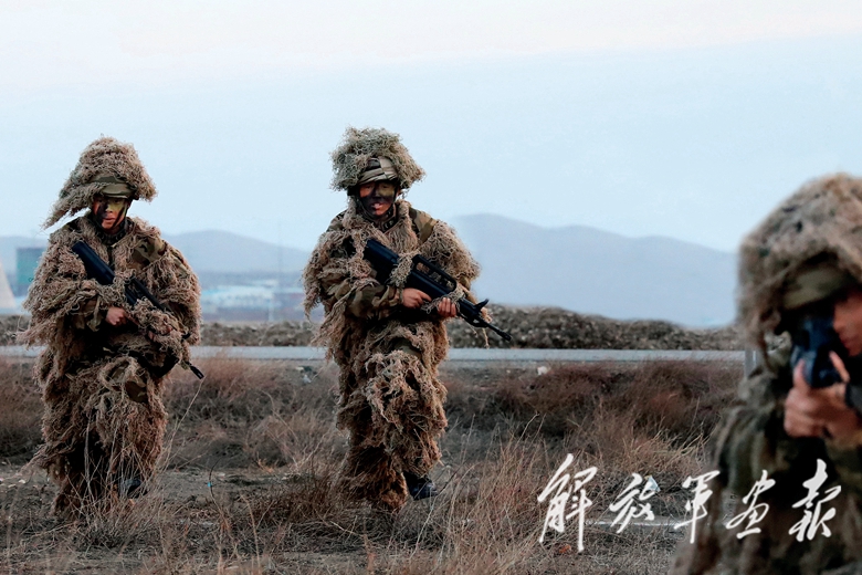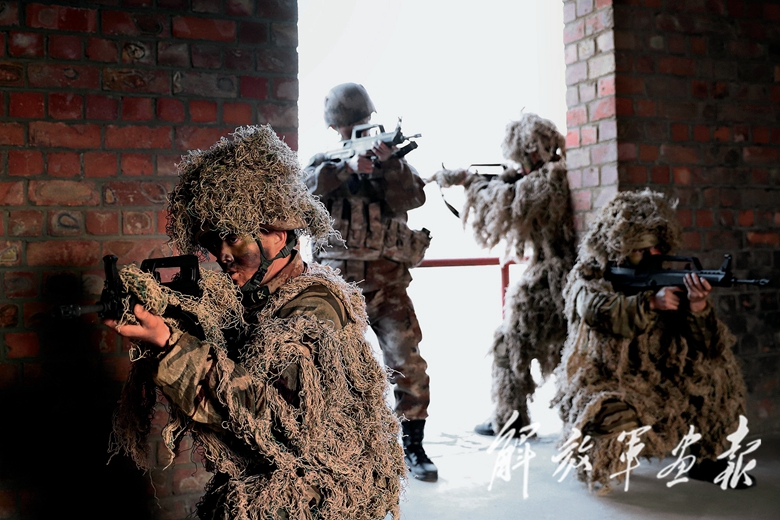 蘇巴提(后右)在演練中與戰(zhàn)友并肩作戰(zhàn)。