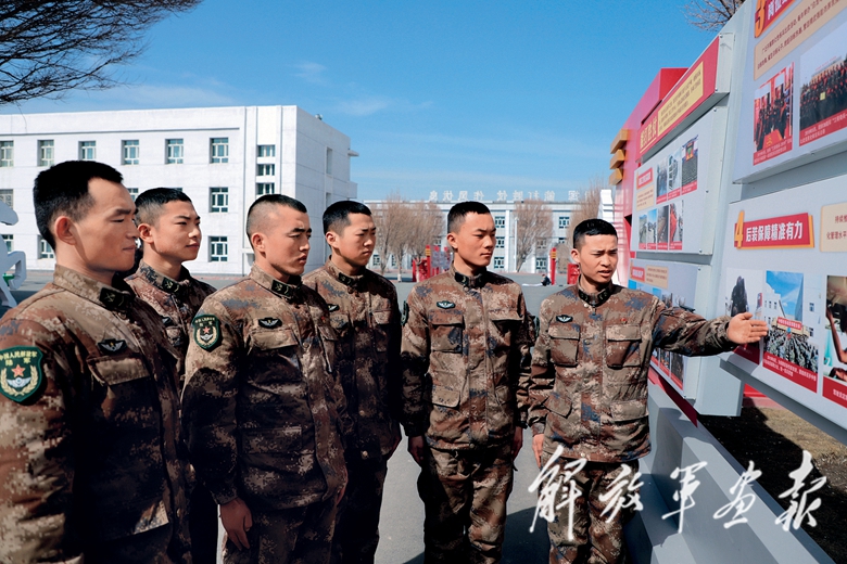 蘇巴提(左三)和戰(zhàn)友認真聆聽班長講團史。