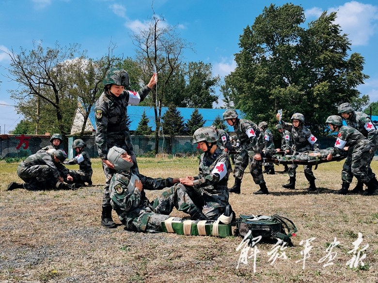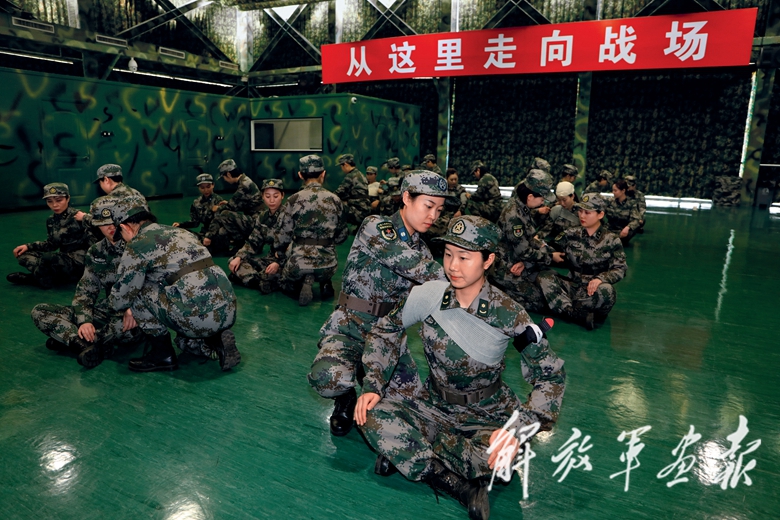 5月上旬,戰(zhàn)傷救護(hù)訓(xùn)練場(chǎng)上硝煙彌漫,我軍“傷員”傷勢(shì)嚴(yán)重。主管護(hù)師王淑艷冷靜沉著,指揮各個(gè)救護(hù)小組快速集合,沖向“戰(zhàn)場(chǎng)”。“右前方遭‘?dāng)场u擊,立即隱蔽!”前進(jìn)過程中,王淑艷不時(shí)下達(dá)指令。救護(hù)人員采取各種戰(zhàn)術(shù)動(dòng)作躲閃隱蔽,順利進(jìn)入目標(biāo)地域,尋找“傷員”并展開救護(hù)……