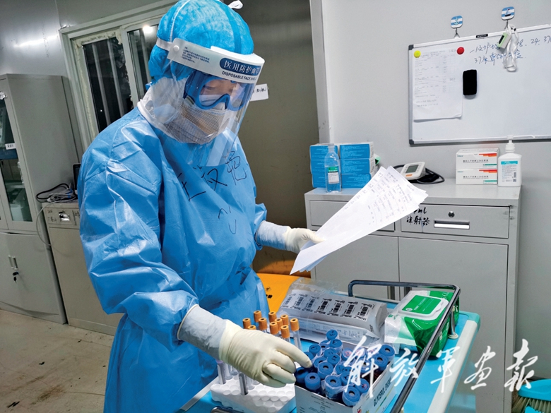 “紅區(qū)”就是戰(zhàn)場(chǎng),救護(hù)就是戰(zhàn)斗。一天上午臨近交班時(shí),一名患者突然病情危重。已經(jīng)在“紅區(qū)”工作超過3小時(shí)的高銳,早已累得汗流浹背。她戴著近視鏡和護(hù)目鏡,兩重鏡片前霧氣彌漫,透視效果極差。憑著過硬的“微光輸液”技能,高銳沉著冷靜地為患者準(zhǔn)確推注了一組呼吸興奮劑,使患者脫離了生命危險(xiǎn)。