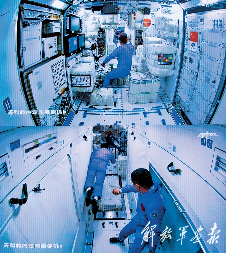 在神舟十二號(hào)載人飛船與天和核心艙成功實(shí)現(xiàn)自主快速交會(huì)對(duì)接后,航天員乘組從返回艙進(jìn)入軌道艙。按程序完成各項(xiàng)準(zhǔn)備后,先后開啟節(jié)點(diǎn)艙艙門、核心艙艙門,北京時(shí)間2021年6月17日18時(shí)48分,航天員聶海勝、劉伯明、湯洪波先后進(jìn)入天和核心艙,標(biāo)志著中國(guó)人首次進(jìn)入自己的空間站。