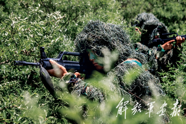 仲夏時(shí)節(jié),烈日高懸。陸軍第80集團(tuán)軍某合成旅一場(chǎng)偵察兵實(shí)戰(zhàn)化演練激戰(zhàn)正酣。連續(xù)24小時(shí)的演練全程模擬戰(zhàn)場(chǎng)環(huán)境,負(fù)重山地越野、叢林搜索、牽引橫越、崖壁攀巖、敵后滲透、精準(zhǔn)狙殺等10余個(gè)課目連貫實(shí)施,現(xiàn)場(chǎng)硝煙彌漫、高潮迭起。