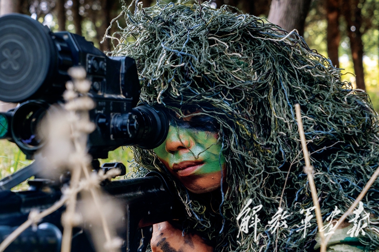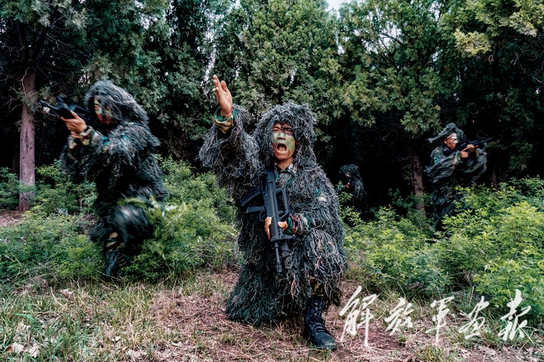 6名身著叢林偽裝服的偵察兵潛伏在一處茂密的灌木叢中。偵察小隊(duì)隊(duì)長(zhǎng)邵培龍確定行動(dòng)路線后,標(biāo)記并上報(bào)現(xiàn)地坐標(biāo),其余偵察兵與狙擊手占領(lǐng)制高點(diǎn),嚴(yán)密監(jiān)視射界區(qū)域。