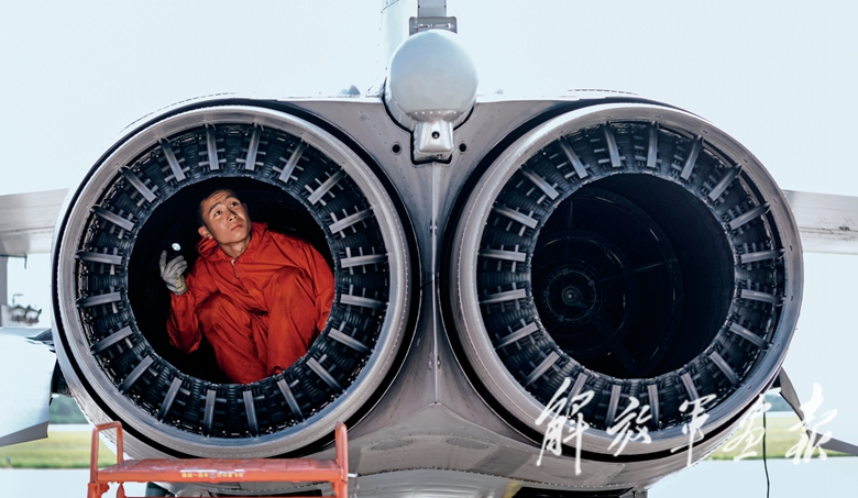 機(jī)務(wù)官兵檢查戰(zhàn)機(jī),做好起飛前準(zhǔn)備。