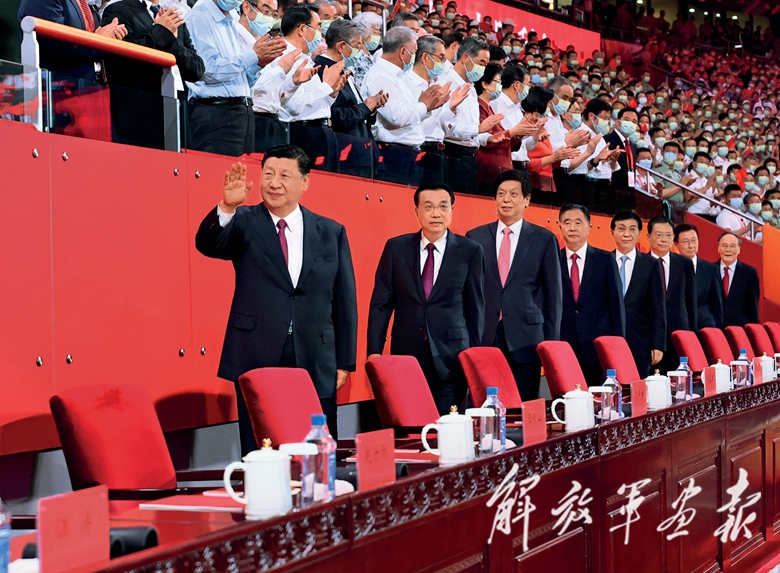 6月28日晚,慶祝中國共產(chǎn)黨成立100周年文藝演出《偉大征程》在國家體育場盛大舉行。習(xí)近平、李克強(qiáng)、栗戰(zhàn)書、汪洋、王滬寧、趙樂際、韓正、王岐山等黨和國家領(lǐng)導(dǎo)人,同約2萬名觀眾一起觀看演出。(攝影/新華社記者 鞠 鵬)