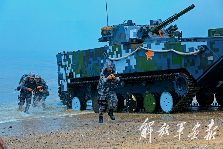 近日,海軍陸戰(zhàn)隊(duì)某旅一場連戰(zhàn)術(shù)綜合演練在膠東半島某綜合訓(xùn)練場火熱展開。水際灘頭,該旅“模范黨支部連”官兵沖鋒在前,率先向?yàn)╊^陣地發(fā)起沖擊。黨員骨干分組帶領(lǐng)官兵對(duì)前沿障礙實(shí)施爆破,順利為步戰(zhàn)車開辟通路,將紅旗插上“敵”方陣地。