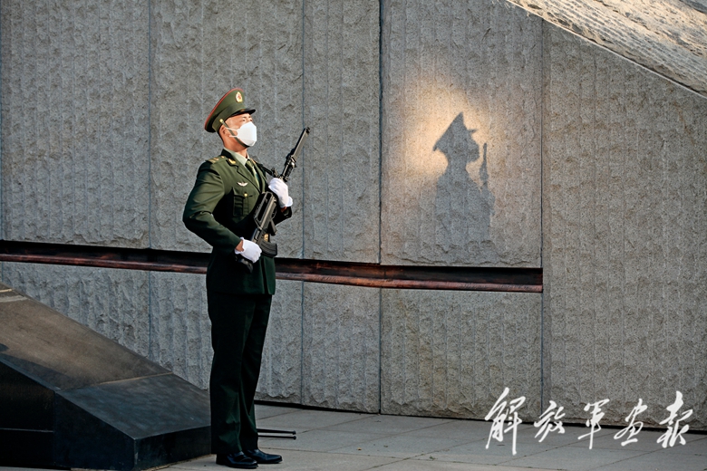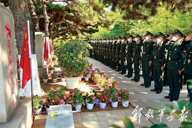 禮兵在墓碑前整齊列隊(duì),深情緬懷烈士英靈。(攝影/馬 強(qiáng))