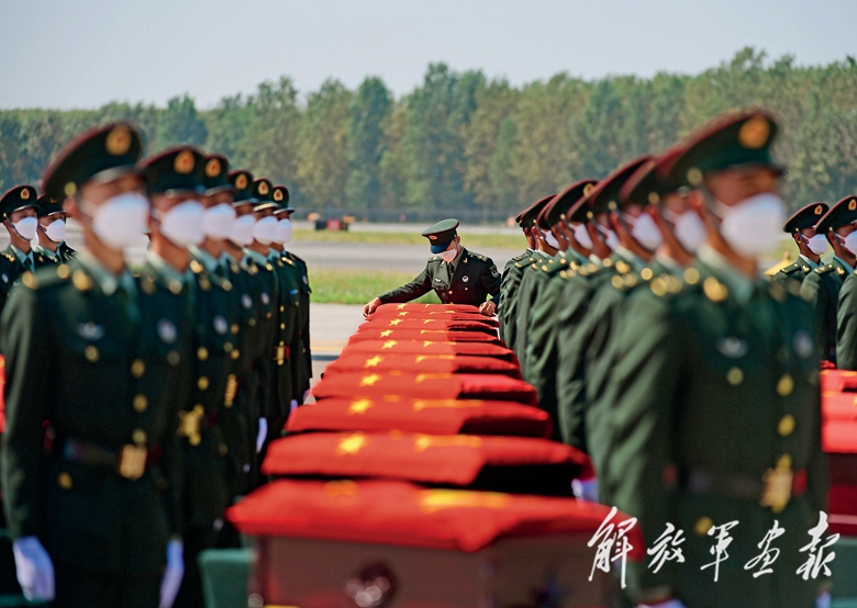 護(hù)送志愿軍烈士遺骸至沈陽抗美援朝烈士陵園。(攝影/新華社記者 姚劍鋒)