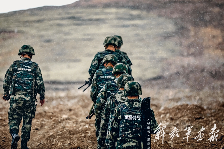 巡邏路上,官兵要翻越3座海拔5000多米的雪山,穿越大大小小的山峰和沼澤地。在高寒缺氧的環(huán)境中,就算輕裝前進,也相當于在內(nèi)地負重20公斤。官兵手拉著手,一步一步慢慢向前挪動,稍不留神就會遭遇險情。但是,沒有一人面露懼色,沒有一人退卻。