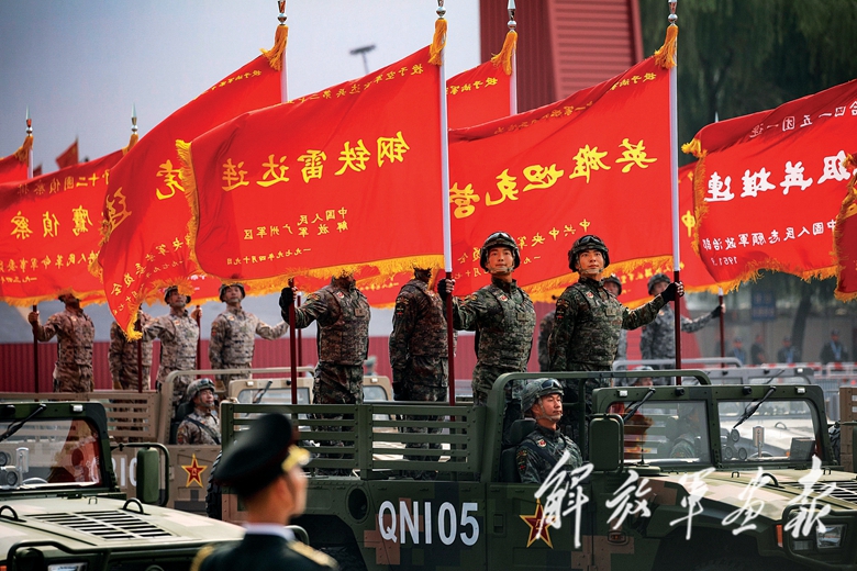在慶祝新中國成立70周年閱兵式上,“鋼鐵雷達(dá)連”戰(zhàn)旗光榮接受祖國檢閱。(資料照片)