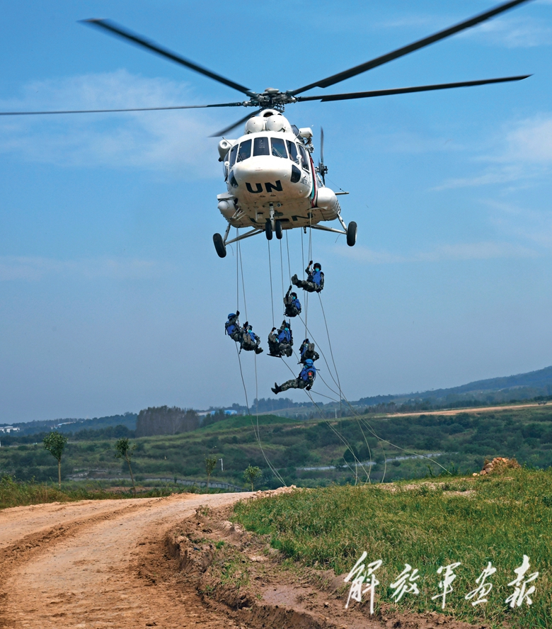 烈日當(dāng)頭,酷熱難耐,實(shí)戰(zhàn)的味道愈發(fā)濃烈。草叢里,“恐怖分子”近在眼前,荷槍實(shí)彈的維和官兵從記者身邊快速跑過,彈炮不時(shí)在耳邊炸響;山坡上,直升機(jī)懸??罩校菪龢咚傩D(zhuǎn)卷起陣陣狂風(fēng),快反隊(duì)員從機(jī)艙兩側(cè)快速索降至地面,成進(jìn)攻隊(duì)形展開;走進(jìn)村莊,“平民”因爭奪水源發(fā)生爭執(zhí)并逐步升級為械斗,維和官兵沉著冷靜,按步驟組織實(shí)施“保護(hù)平民”行動……這是一次按照聯(lián)合國標(biāo)準(zhǔn)作業(yè)程序、交戰(zhàn)規(guī)則和實(shí)戰(zhàn)要求,依托實(shí)景、實(shí)案、實(shí)裝、實(shí)兵設(shè)計(jì)的演練行動,旨在檢驗(yàn)提升維和待命部隊(duì)遂行任務(wù)能力。