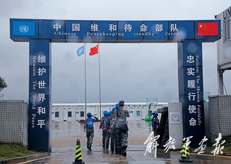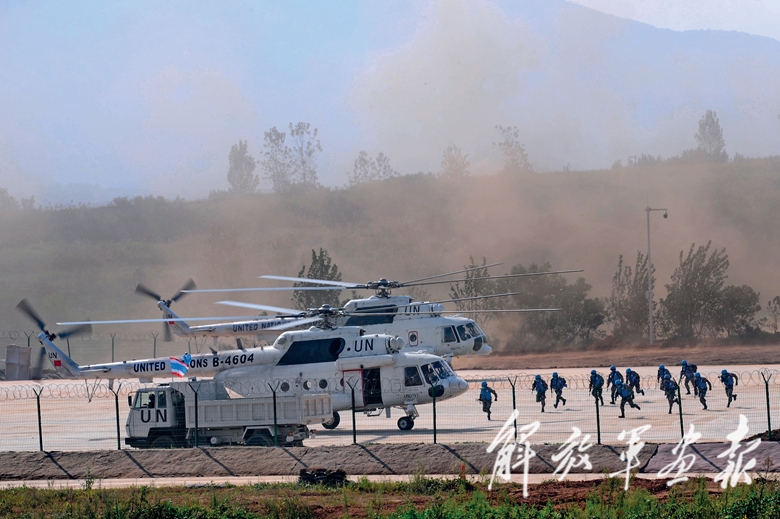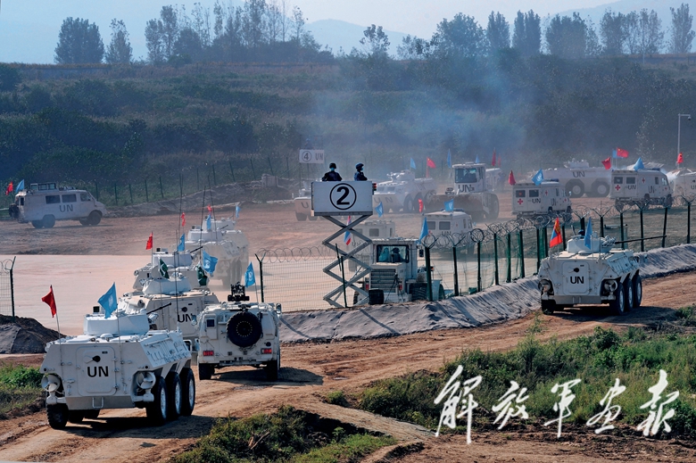 9月6日9時(shí)許,演習(xí)開始儀式在小雨中進(jìn)行。觀摩臺下,用碎石拼成的“為世界和平出征”7個(gè)鮮紅大字莊嚴(yán)奪目,各參演國國旗與聯(lián)合國旗幟迎風(fēng)飄揚(yáng)。我軍除醫(yī)療分隊(duì)外,其余參演官兵均從維和待命部隊(duì)抽組。8000人規(guī)模的我維和待命部隊(duì),包括10類專業(yè)力量、28支分隊(duì),是聯(lián)合國維和待命部隊(duì)數(shù)量最多、分隊(duì)種類最齊全的國家。