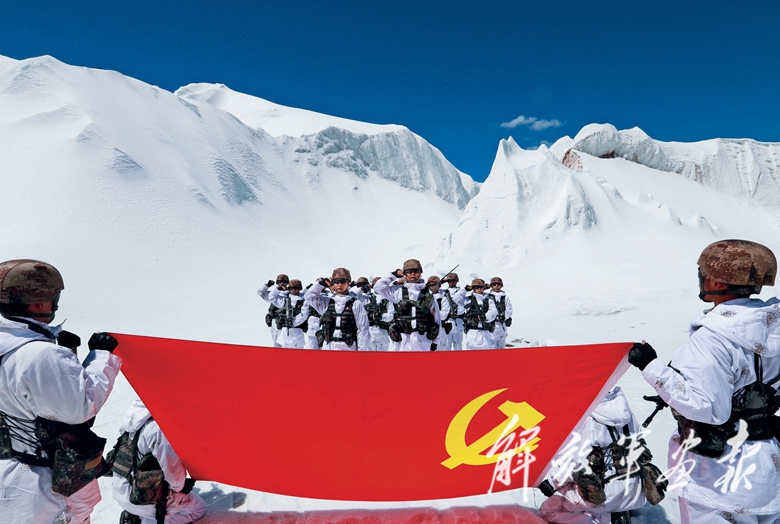 “我宣誓,我志愿加入中國(guó)共產(chǎn)黨,擁護(hù)黨的綱領(lǐng),遵守黨的章程,履行黨員義務(wù)……”訓(xùn)練間隙,該連黨支部組織全體黨員面向黨旗莊嚴(yán)宣誓,錚錚誓言響徹高原,紅旗獵獵飄揚(yáng)山巔。