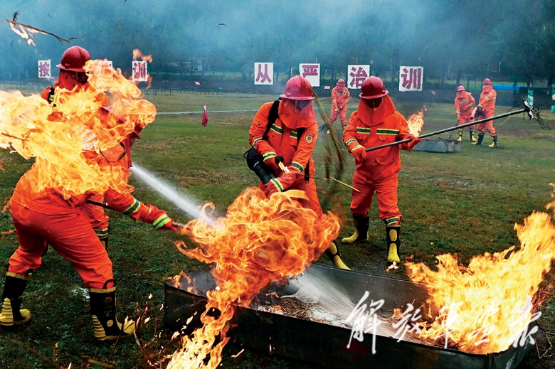 參賽隊(duì)員利用專業(yè)裝備實(shí)施森林滅火課目比武。