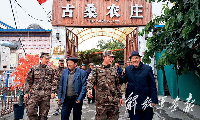 在“聚心茶社”不遠(yuǎn)處,就是以品桑葚、看古書為主題的農(nóng)家樂“古桑農(nóng)莊”。農(nóng)莊建筑古色古香,院子中央是一棵百年桑葚樹。農(nóng)莊是在官兵的幫助和支持下建成的,如今生意越做越紅火,名氣越來越大,門前的道路也被命名為“古桑大道”。