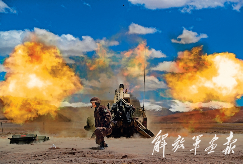 “放!”隨著指揮員一聲令下,炮彈怒吼出膛,陣地上頓時揚起漫天煙塵。“目標(biāo)點縱深5公里處,發(fā)現(xiàn)‘?dāng)场г筷?,立即對該地點進行火力覆蓋!”觀察所完成測算,立即將目標(biāo)信息傳達到炮陣地,新型車載榴彈炮快速鎖定目標(biāo),數(shù)十發(fā)炮彈呼嘯而出,直撲“敵”陣……