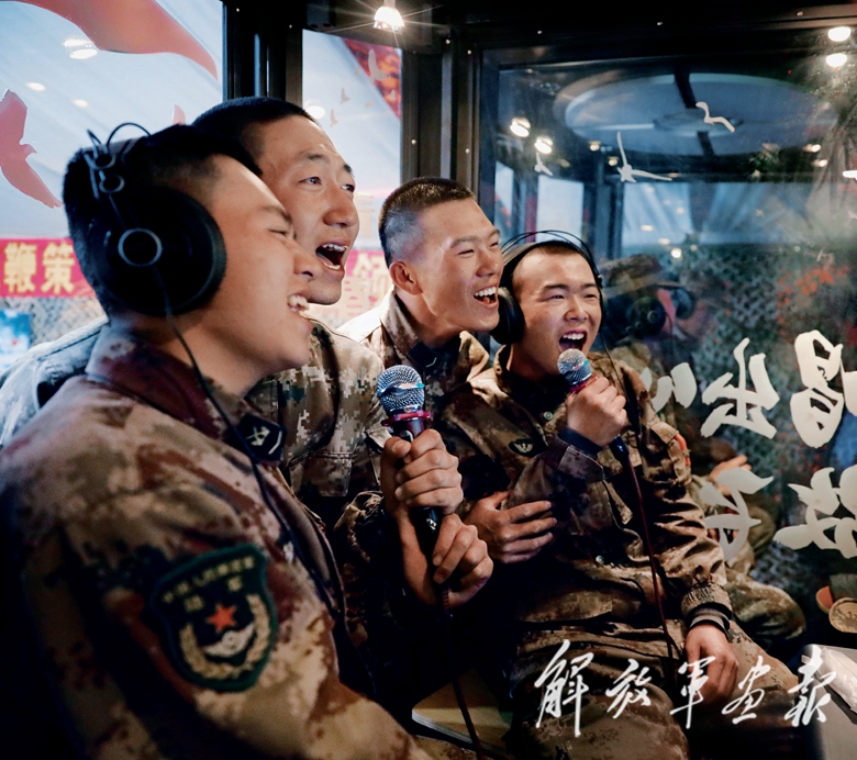 官兵在“快樂(lè)唱吧”盡情放歌。
