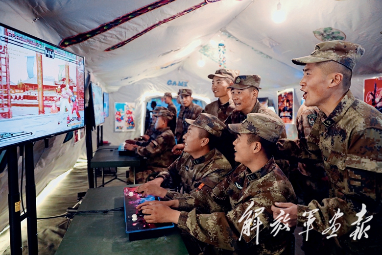 官兵進(jìn)行電子競(jìng)技比賽,舒緩身心壓力。