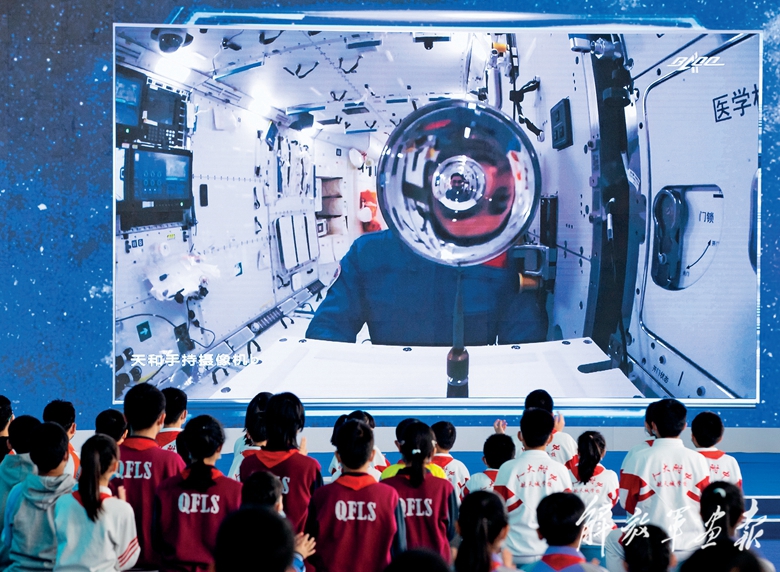 此次太空授課活動進行了全程現(xiàn)場直播,在中國科技館設(shè)地面主課堂,在廣西南寧、四川汶川、香港、澳門分設(shè)4個地面分課堂,共1420名中小學(xué)生代表參加現(xiàn)場活動。