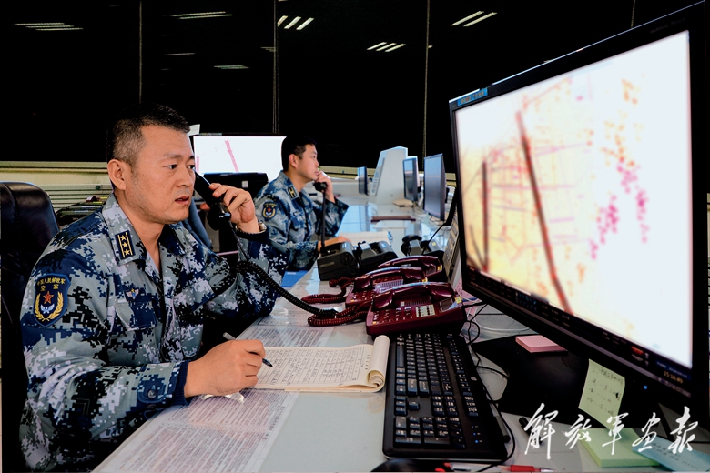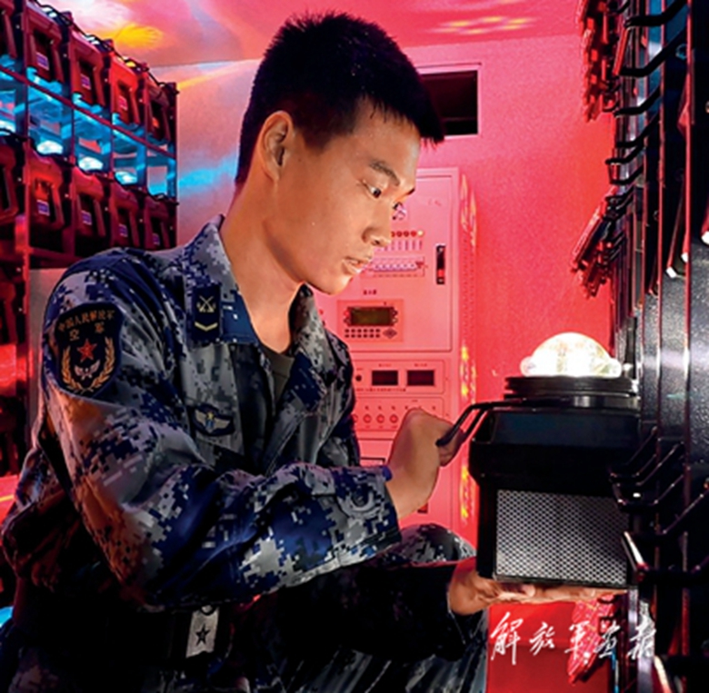 21時(shí)許,各飛行保障崗位上的官兵正在燈光下聚精會(huì)神地工作,飛行指揮塔臺(tái)一部電臺(tái)忽然出現(xiàn)陣陣電流雜音,導(dǎo)致指揮員與飛行員通話聯(lián)絡(luò)受阻。此時(shí),空中有4架戰(zhàn)機(jī)正準(zhǔn)備降落。面對(duì)突發(fā)情況,通信營(yíng)無線電技師張衛(wèi)東立即啟用備份電臺(tái),快速進(jìn)行參數(shù)設(shè)置、頻率調(diào)整,很快恢復(fù)了地空通信。隨后,他又迅速鎖定故障電臺(tái)信號(hào)干擾源方位,成功排除故障……