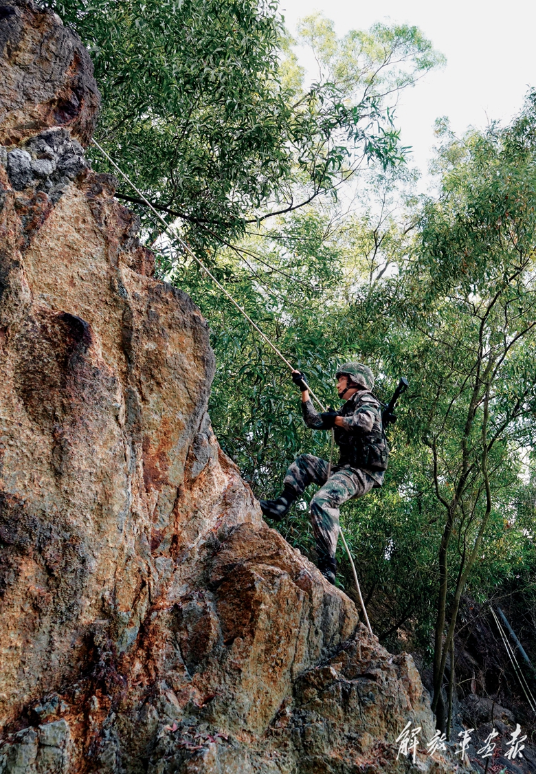 特戰(zhàn)隊(duì)員攀登崖壁,抵近偵察。
