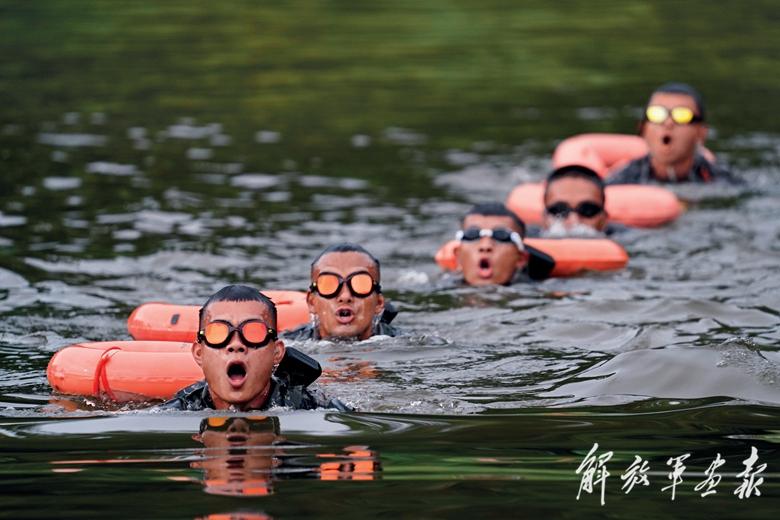 突擊小隊(duì)進(jìn)行武裝泅渡。