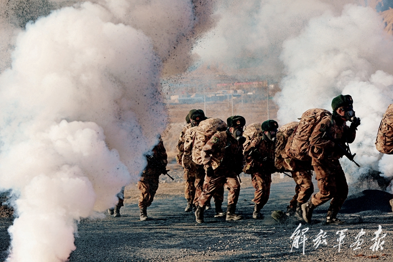 清晨,警報(bào)聲響徹高原上空。官兵背負(fù)重達(dá)近30公斤的裝具,快速向指定地域進(jìn)發(fā)。