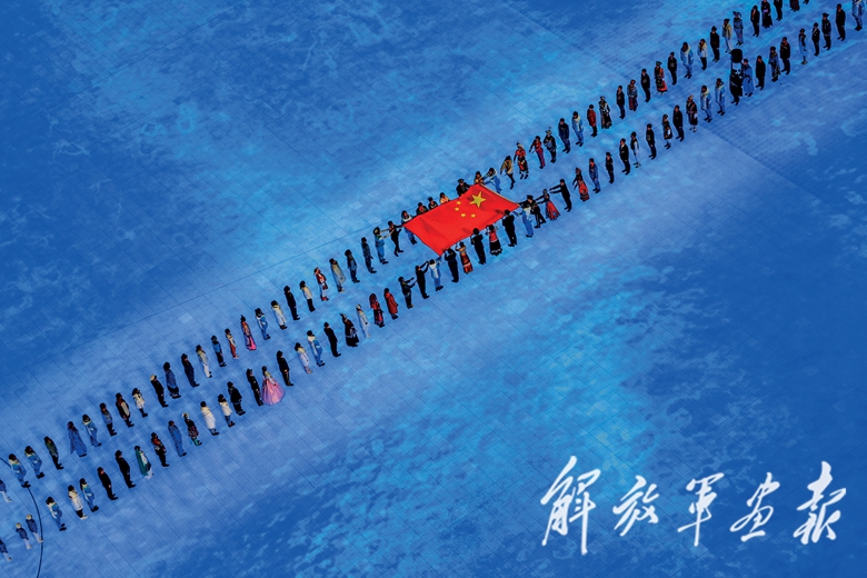 中國各行各業(yè)、先進模范人物、56個民族的代表,用雙手將鮮艷的五星紅旗緩緩傳遞。(攝影/新華社記者 陳益宸)