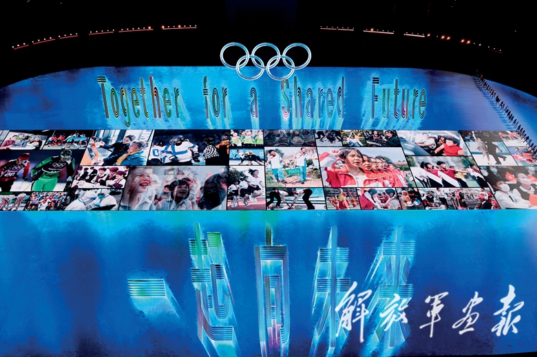 開幕式上的“構建一朵雪花”環(huán)節(jié)。(攝影/新華社記者 楊 磊)