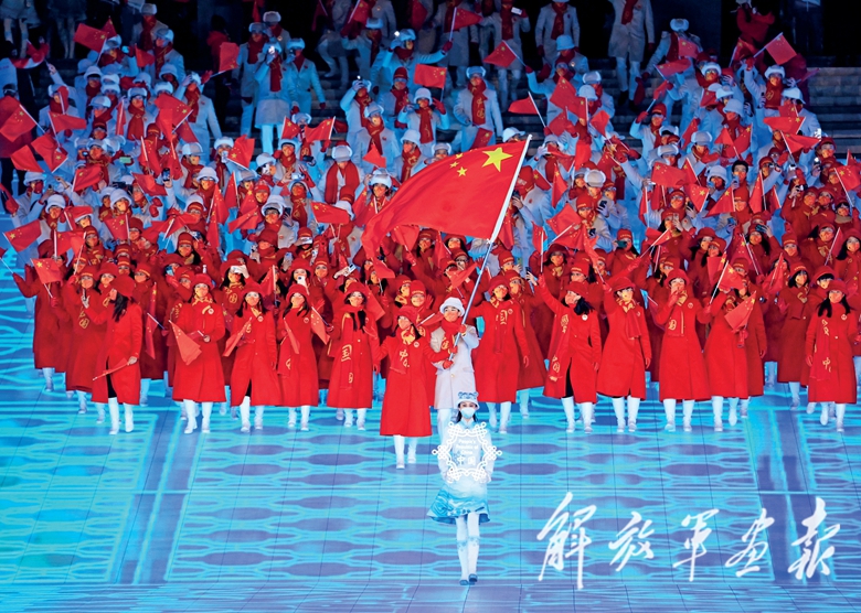 在《歌唱祖國》的激昂旋律聲中,東道主中國代表團入場。(攝影/新華社記者 楊 磊)