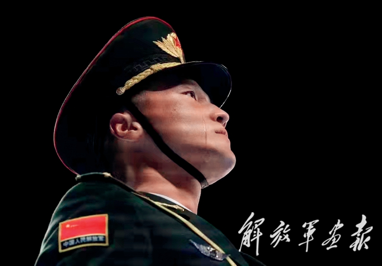 中國人民解放軍儀仗大隊戰(zhàn)士閆振在升國旗時激動落淚。(資料圖片)