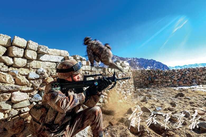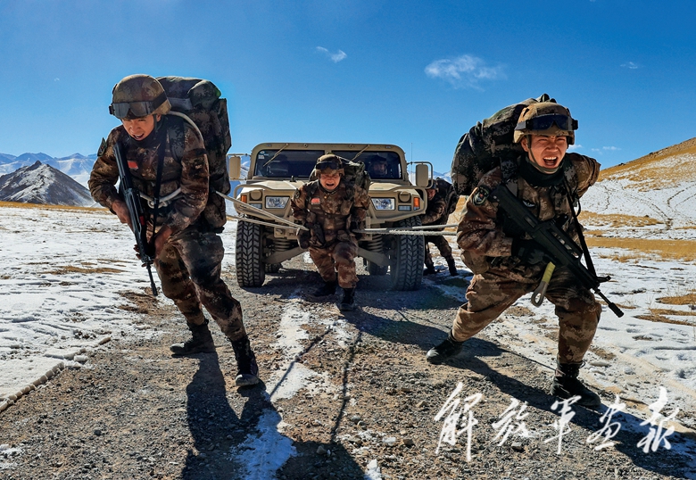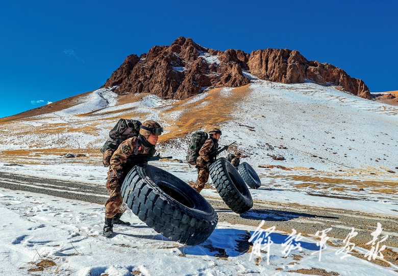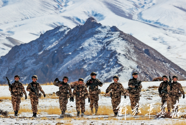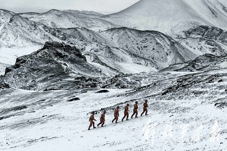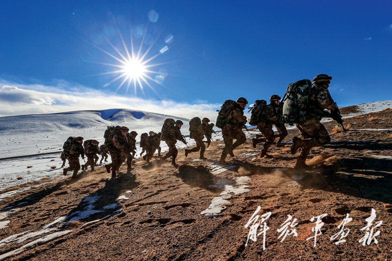 在阿里高原,即使輕裝行走也相當(dāng)于在平原上負(fù)重10公斤的運(yùn)動(dòng)量。官兵背負(fù)25公斤重的物資裝備,穿行在各種復(fù)雜地域,在海拔4500多米的高度上展示著中國(guó)軍人的意志品質(zhì)和能力素質(zhì)。