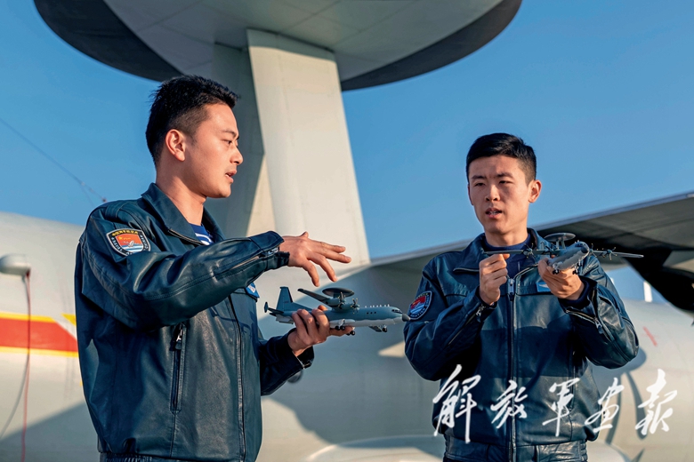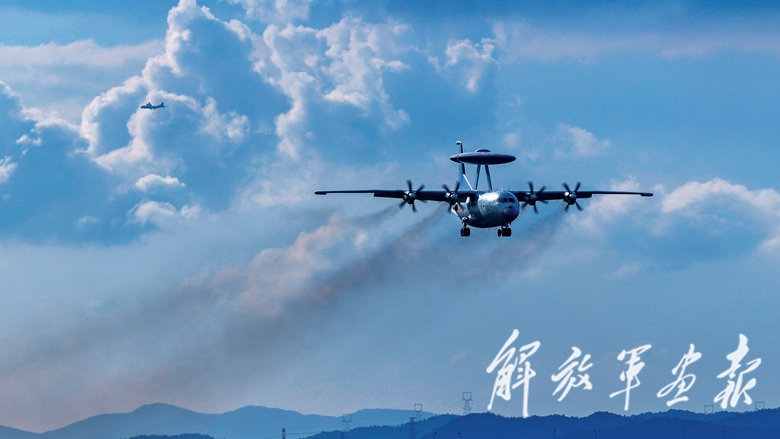 “計(jì)時(shí)起飛!”接到塔臺(tái)指令,預(yù)警機(jī)、殲擊機(jī)呼嘯升空。預(yù)警機(jī)領(lǐng)航員郝心龍和空中機(jī)械師陳澤緊盯各類儀表盤(pán),配合駕駛員精準(zhǔn)撥動(dòng)電門(mén)按鈕;任務(wù)艙內(nèi),方寸熒屏上數(shù)據(jù)奔流,鍵盤(pán)敲擊聲此起彼伏,空中戰(zhàn)勤人員密切注視顯控臺(tái)上跳動(dòng)的參數(shù)和曲線,及時(shí)將戰(zhàn)場(chǎng)數(shù)據(jù)推送至指揮臺(tái)位。