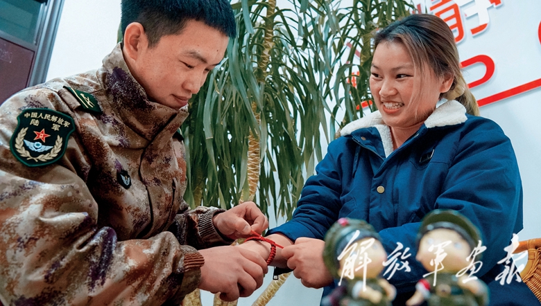 終于見(jiàn)到了久違的丈夫。何娟面露羞澀,當(dāng)著官兵的面,送給許世毅一份獨(dú)特的禮物——自己親手編織的一串“秀發(fā)手鏈”。戰(zhàn)友們笑著給許世毅“解題”:“這是‘許你一世一人’的意思,嫂子真是太浪漫了!”山高水闊,此心不移。小小的手鏈,寄予了軍嫂的千言萬(wàn)語(yǔ),將相隔遙遠(yuǎn)的兩顆心緊緊連在一起。