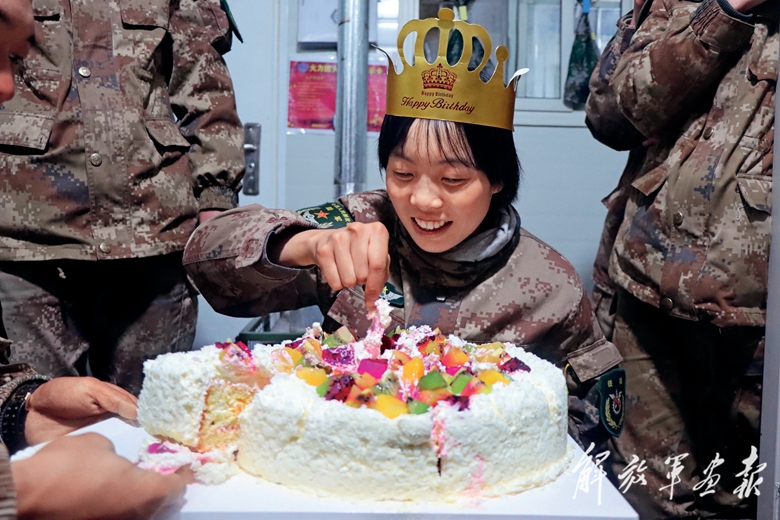 “風雨彩虹,鏗鏘玫瑰,縱橫四海,笑傲天涯,永不后退……”初春,新疆軍區(qū)某部營區(qū)內,一陣悅耳的歌聲傳來。循聲望去,只見一群身著迷彩服的女兵正圍坐在一起,為戰(zhàn)友張若楠過生日。她們特意將生日歌換成《鏗鏘玫瑰》,句句歌詞唱出了女兵們扎根高原、逐夢前行的心聲。