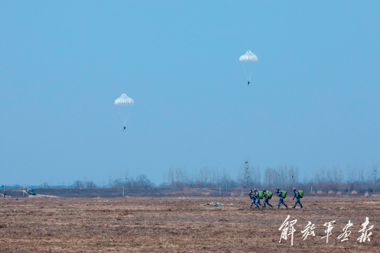 “打開后兩個排氣口;三點并緊著陸……”面對空中紊亂的合成氣流,女兵們遵循指揮,沉穩(wěn)地操縱降落傘,陸續(xù)準確降落在預定地域,圓滿完成實裝跳傘任務。