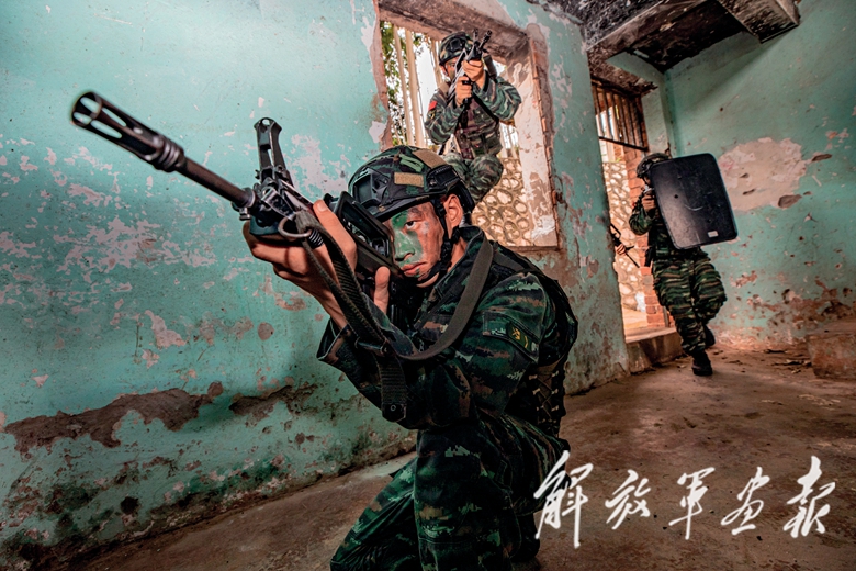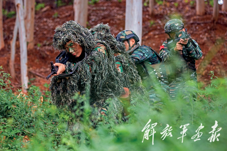 “2名‘暴恐分子’攜帶殺傷性武器逃竄至五象嶺一帶,上級命令我部迅速追擊抓捕……”中隊官兵聞令而動,迅速集結(jié),直奔任務(wù)地域。指揮員研判地形后部署兵力,對山林展開拉網(wǎng)式搜索。