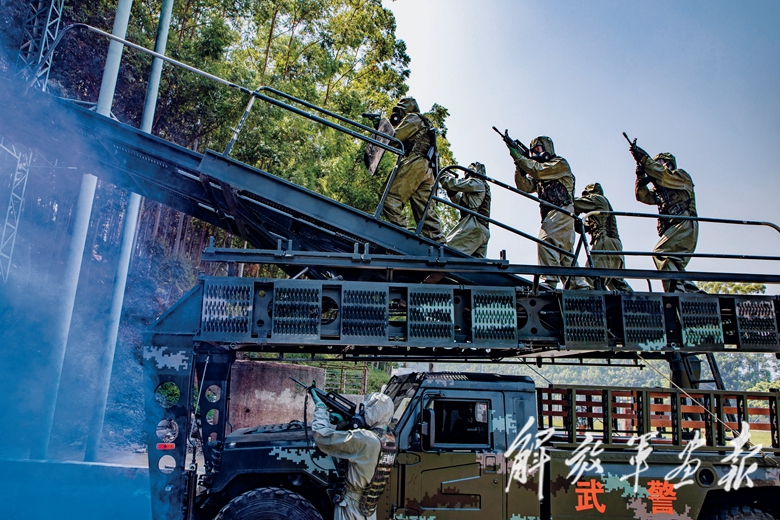 戰(zhàn)場(chǎng)瞬息萬(wàn)變,不容官兵有半分懈怠。“‘暴恐分子’在化工廠實(shí)施破壞!”面對(duì)導(dǎo)調(diào)組設(shè)置的特情,指揮員及時(shí)籌劃戰(zhàn)斗行動(dòng)、定下戰(zhàn)斗決心、準(zhǔn)時(shí)發(fā)起攻擊……隨著信號(hào)彈騰空而起,突擊車分多路向“敵”發(fā)起沖擊。面對(duì)不同距離、不同種類的靶標(biāo),各專業(yè)分隊(duì)利用各類裝備展開(kāi)精準(zhǔn)打擊。