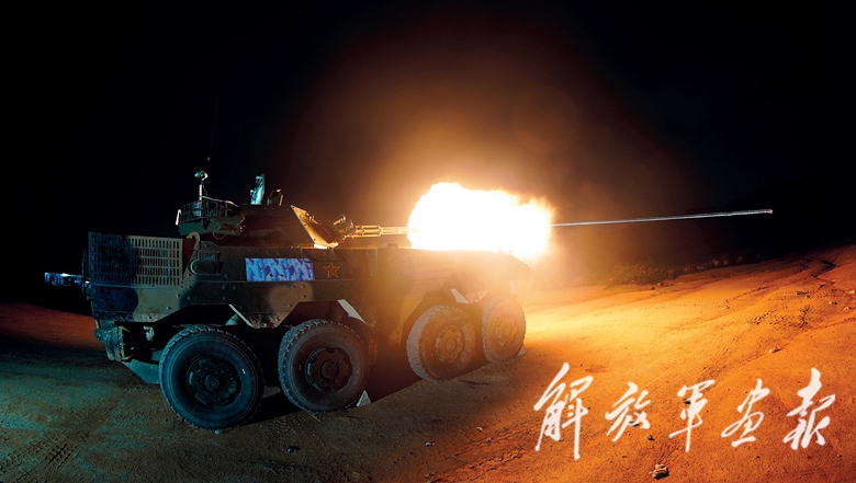 夜幕降臨,考核轉入夜間實彈射擊階段。暗夜環(huán)境給操縱裝備、發(fā)現(xiàn)目標、修正偏差帶來很大困難,車長借助夜視儀觀察射擊環(huán)境、捕捉目標,炮手迅速調整射擊角度后果斷擊發(fā),成功摧毀目標。