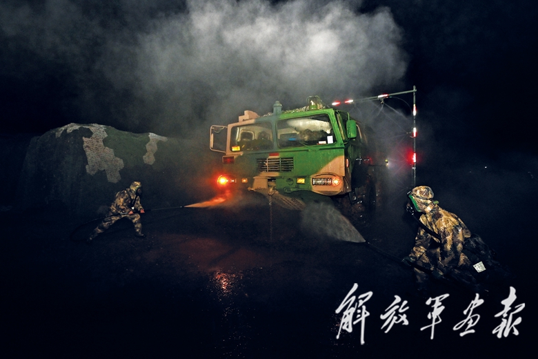 戰(zhàn)車剛駛?cè)胱鲬?zhàn)地域,特情驟然而至?!扒胺降缆窔p并受核沾染,立即進行全身防護,梯隊選擇迂回道路。”接到營長李雷的指令,官兵快速穿戴防護裝具,啟用備份路線繼續(xù)進發(fā)。