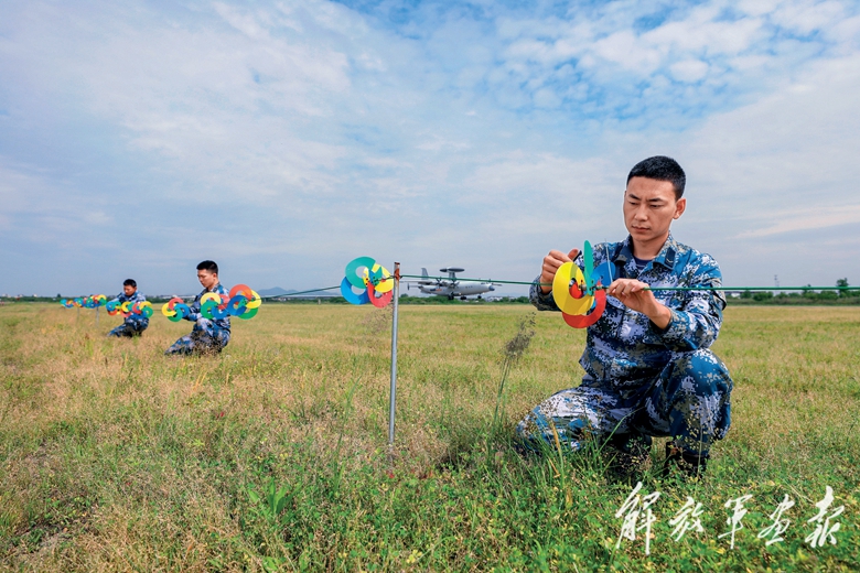 除了人工驅(qū)趕,官兵還注重研究機場周邊鳥類分布及活動規(guī)律,在外場設(shè)置仿真模特、彩色風(fēng)輪等驅(qū)鳥設(shè)備,防止鳥兒在機場停留。跑道兩側(cè)的草地上一排排撲鳥網(wǎng)高低錯落,經(jīng)常會有鳥兒落入陷阱。每當(dāng)飛行任務(wù)結(jié)束,驅(qū)鳥兵就會及時過來解救它們并放生。