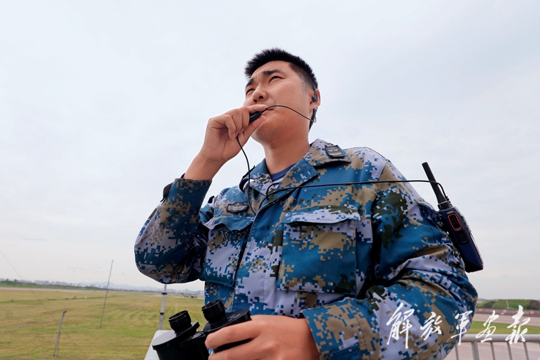 各哨位通報鳥情,在確認(rèn)機場上空無鳥類活動后,多架戰(zhàn)機滑向跑道,依次升空。