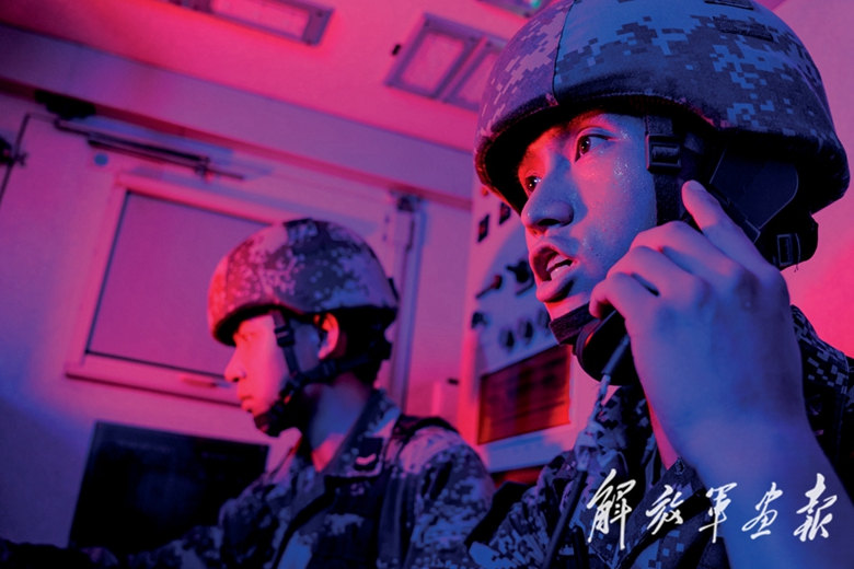 “東南方向,方位135°,‘?dāng)硻C(jī)’5架。”戰(zhàn)斗一觸即發(fā)。操作艙內(nèi),上等兵石濱杰從雷達(dá)屏上捕獲“敵”動(dòng)向,通過(guò)指揮系統(tǒng)鏈路將空情傳至指揮所;情報(bào)處理車?yán)?,緊盯空情態(tài)勢(shì)的指揮員鄭浩迅速定下抗擊決心:“實(shí)施信息阻塞干擾!”