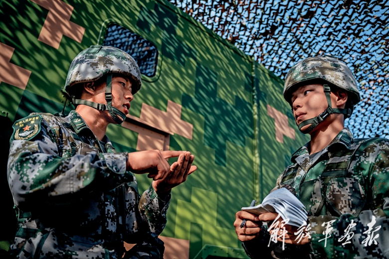 軍士骨干幫助年輕戰(zhàn)友尋找差距、總結(jié)經(jīng)驗(yàn)。