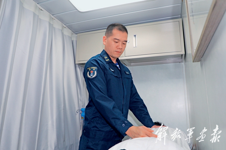 遠(yuǎn)洋護(hù)航,任務(wù)繁重,傷痛在所難免。10點(diǎn)30分,南通艦機(jī)電班長(zhǎng)劉偉雙手捂著腰,皺著眉走進(jìn)衛(wèi)生室。衛(wèi)生員李志揚(yáng)見(jiàn)狀,示意他趴在理療床上。因?yàn)殚L(zhǎng)時(shí)間蜷在潮濕狹窄的機(jī)艙,劉偉的腰部積勞成疾,若非萬(wàn)不得已,他是不會(huì)來(lái)求醫(yī)的。