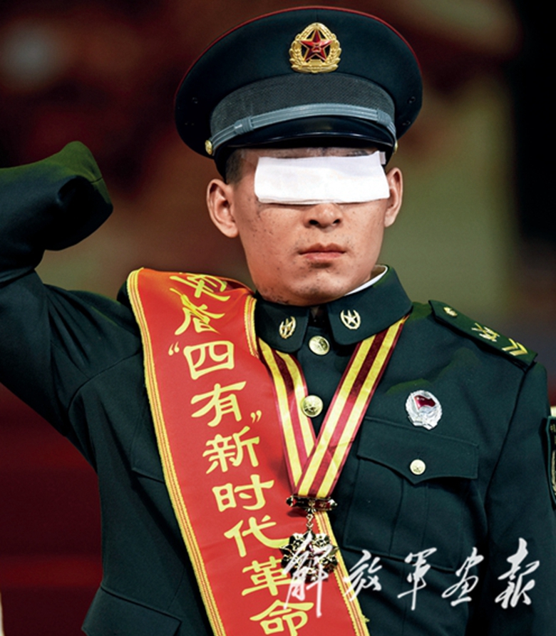 2019年7月31日,習(xí)近平主席為杜富國佩掛英模獎(jiǎng)?wù)?、頒發(fā)證書,同他合影留念。他舉起斷臂,向統(tǒng)帥敬了一個(gè)特殊軍禮。他用這樣一種堅(jiān)強(qiáng)的方式告訴所有人,不管什么時(shí)候,他都是一名軍人,都會(huì)以奮斗的姿態(tài)奔跑逐夢(mèng)。