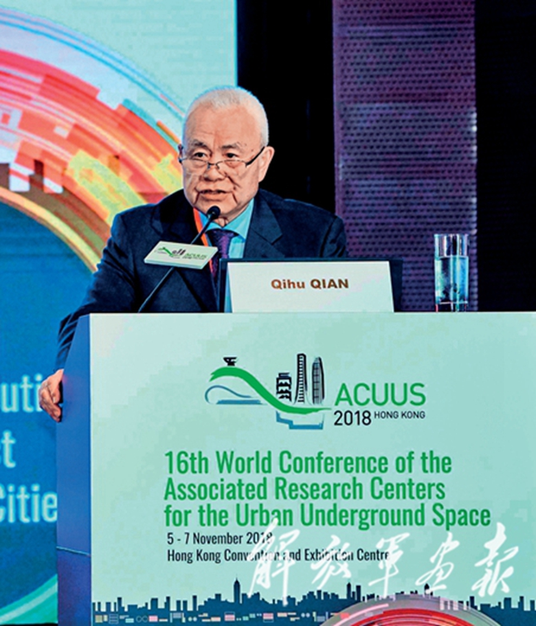 2018年,錢七虎參加第16屆國際城市地下空間會(huì)議。(攝影/特約記者 張永進(jìn))