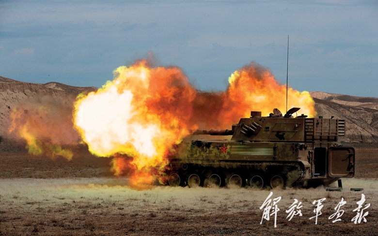 接收到射擊口令后,各炮長迅速調(diào)整射擊諸元,指揮全車人員展開行動。“一發(fā)實彈裝填,預(yù)備——放!”一聲令下,炮彈呼嘯而出,瞬間火光沖天,目標(biāo)被成功摧毀。