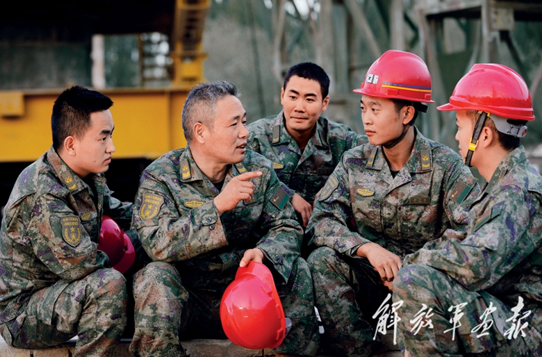 2019年,已達(dá)最高服役年限的唐武祥,主動(dòng)提交延期服役申請。這次,他的“主戰(zhàn)場”又多了一個(gè)傳經(jīng)送寶的課堂。研究使用新型裝備、工程作業(yè)技術(shù)指導(dǎo)、實(shí)踐操作規(guī)范總結(jié)……戰(zhàn)友們經(jīng)??吹教莆湎榘滋煸谑┕がF(xiàn)場帶教新人,夜里挑燈伏案整理筆記心得。近年來,在唐武祥的幫帶下,60余名軍士骨干成長為專業(yè)技術(shù)能手。
