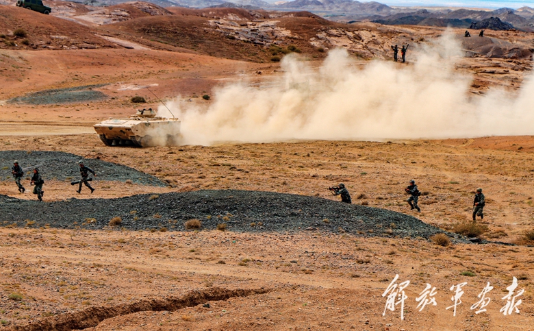 經(jīng)過連續(xù)兩天激烈的對抗,紅方最終戰(zhàn)勝藍方。圖為紅方參演官兵歡呼慶祝勝利。